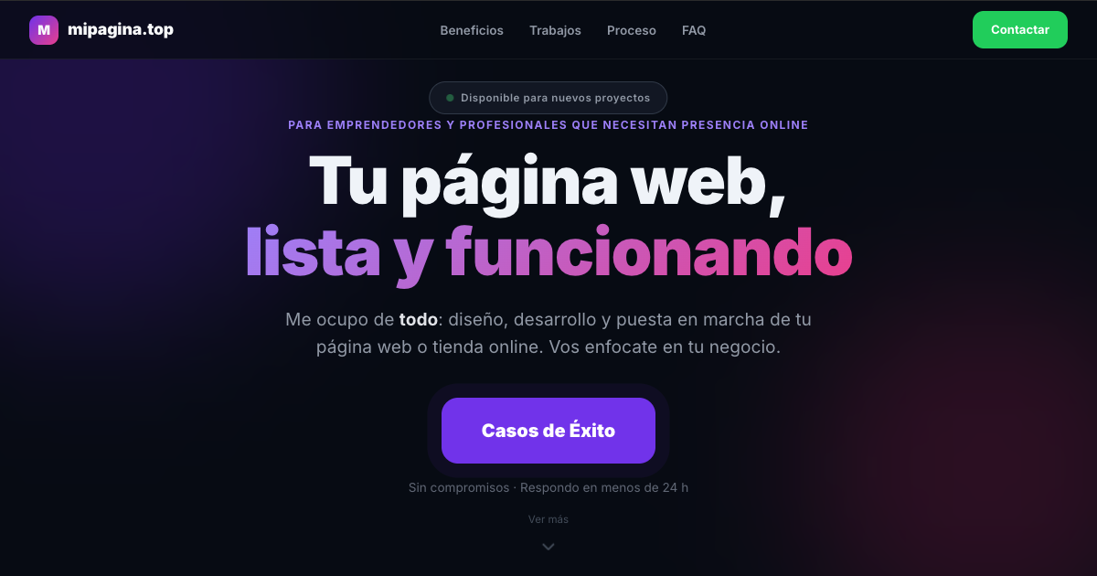 Mandame un mensaje y te cuento cómo tener tu página web lista en pocos días.